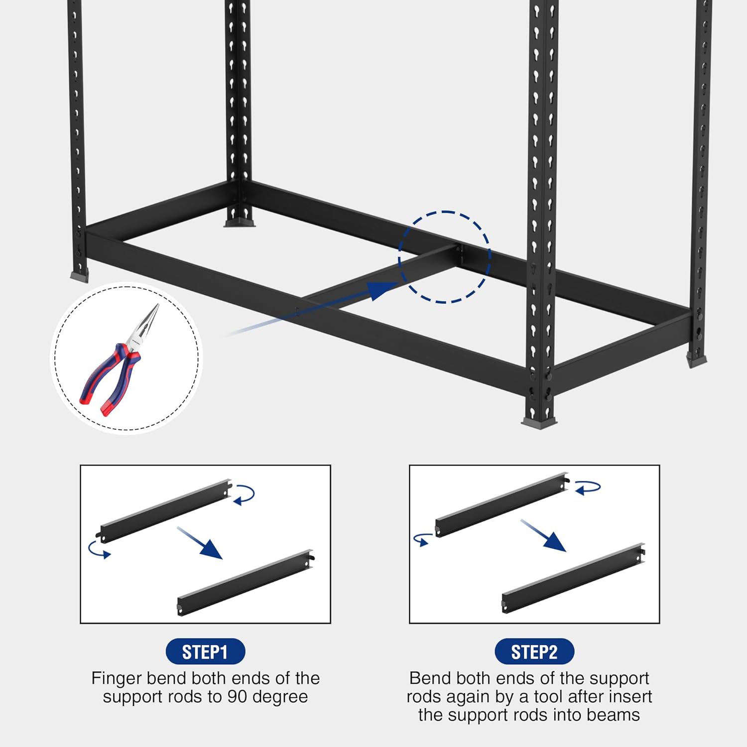 - 【Boltless Shelving】No nuts or bolts are required. You can assemble this shelving unit easily and quickly. A rubber mallet is recommended for assembly to tighten the shelving rack. It is also convenient when disassembled. This shelving is equipped with rubber footpads, which can protect the floor, add extra stability, and prevent the shelving from sliding accidentally.