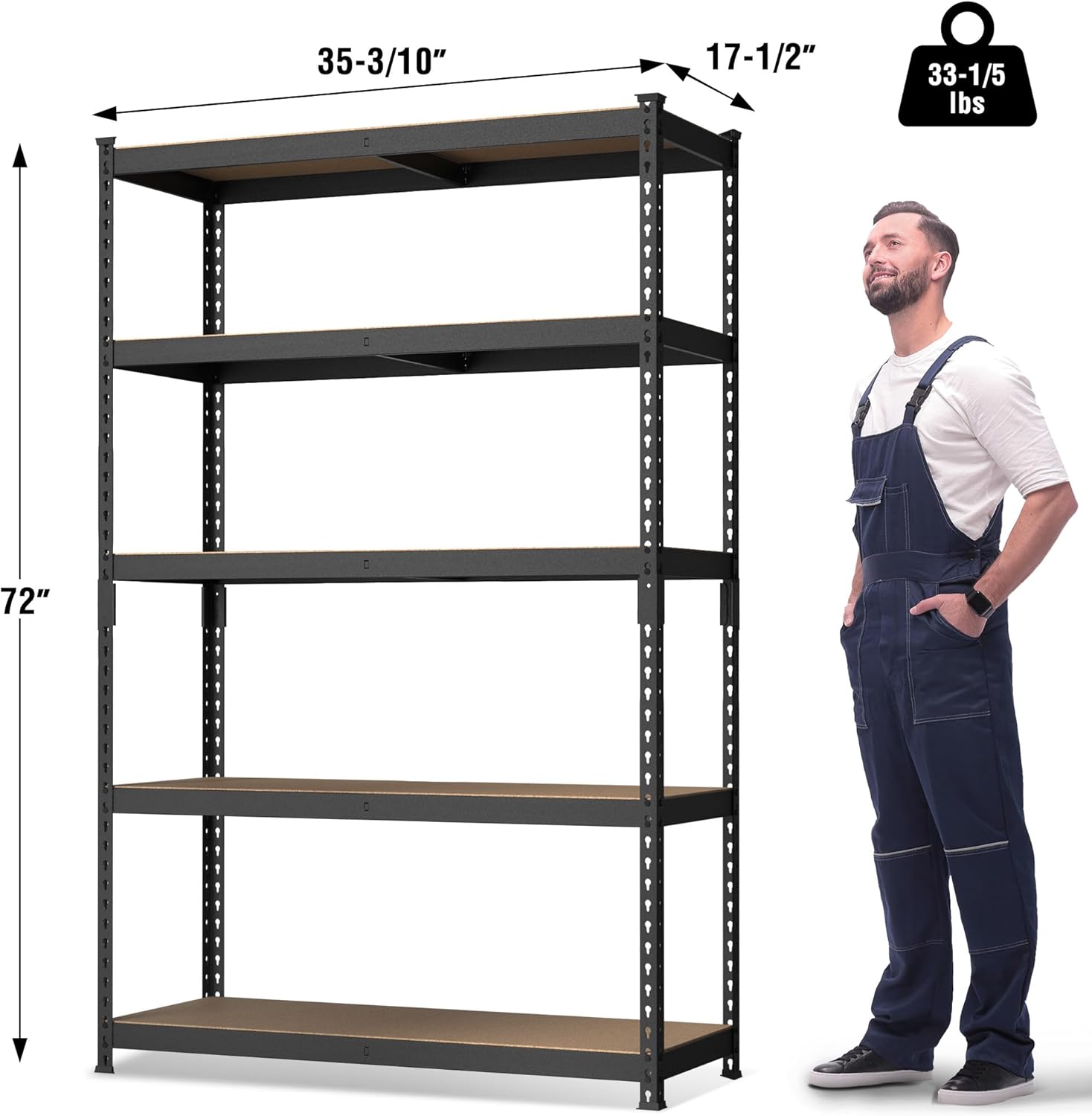 WORKPRO 5-Tier Steel Shelving Unit-Black, 35-3/10”W x 17-1/2”D x 72”H, Adjustable Storage Rack, Heavy Duty Shelf with MDF Board, 1650 lbs Load Capacity (Total) for Garage, Basement, Warehouse, Kitchen