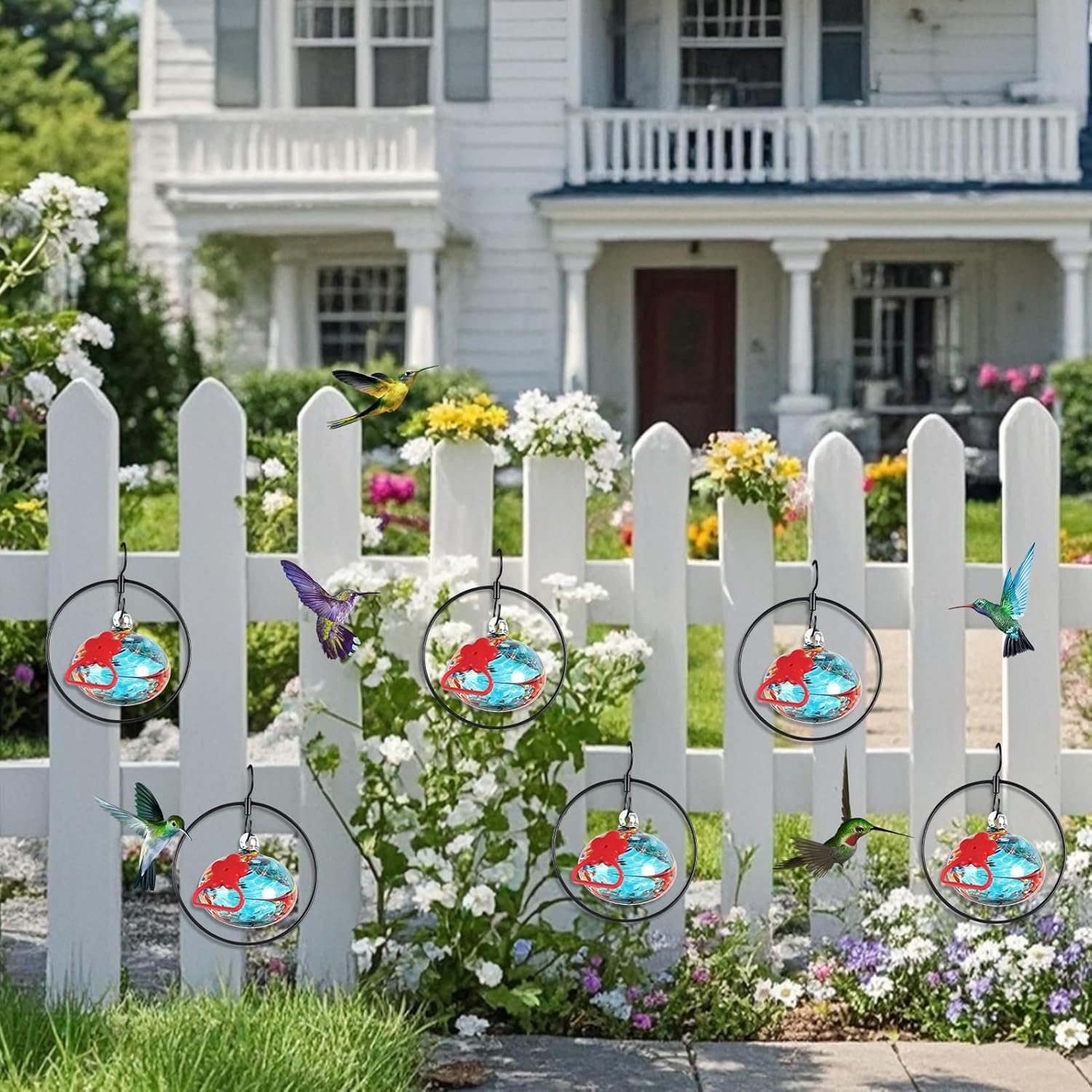 - 【Attract more hummingbirds】 Flexible modular combination feeder provides 6 feeding ports.Independent detachable hooks allow free combination and hanging in gardens,backyards, windows,decks, front porches and anywhere hummer birds appear.