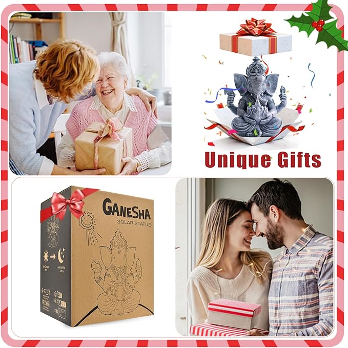 Solar Ganesha Elephant Garden Statues: Outdoor Sculptures with Lotus Lights Decor for Patio Lawn Yard Art - Gifts for Mom Grandma