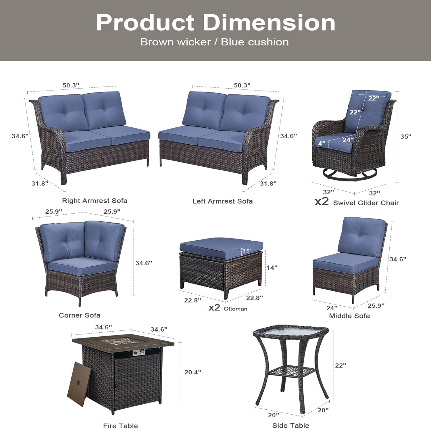 - Color : Brown Wicker / Blue Cushion