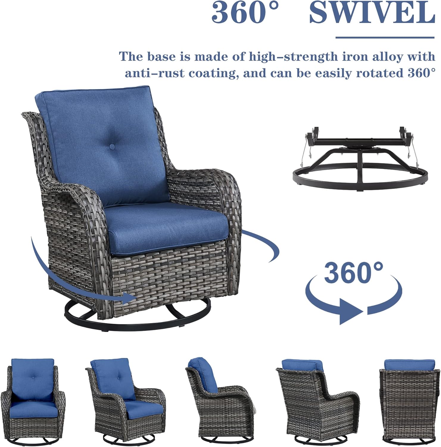 - 2.Serene Wicker Swivel Elegance: Soothe away stress in our unique wicker swivel rocker glider chairs that combine the relaxing benefits of glider with the soothing motion of 360 swivel. Designed for pure relaxation, these outdoor swivel rocker chairs elevate your outdoor comfort, adding a touch of luxury to your space.