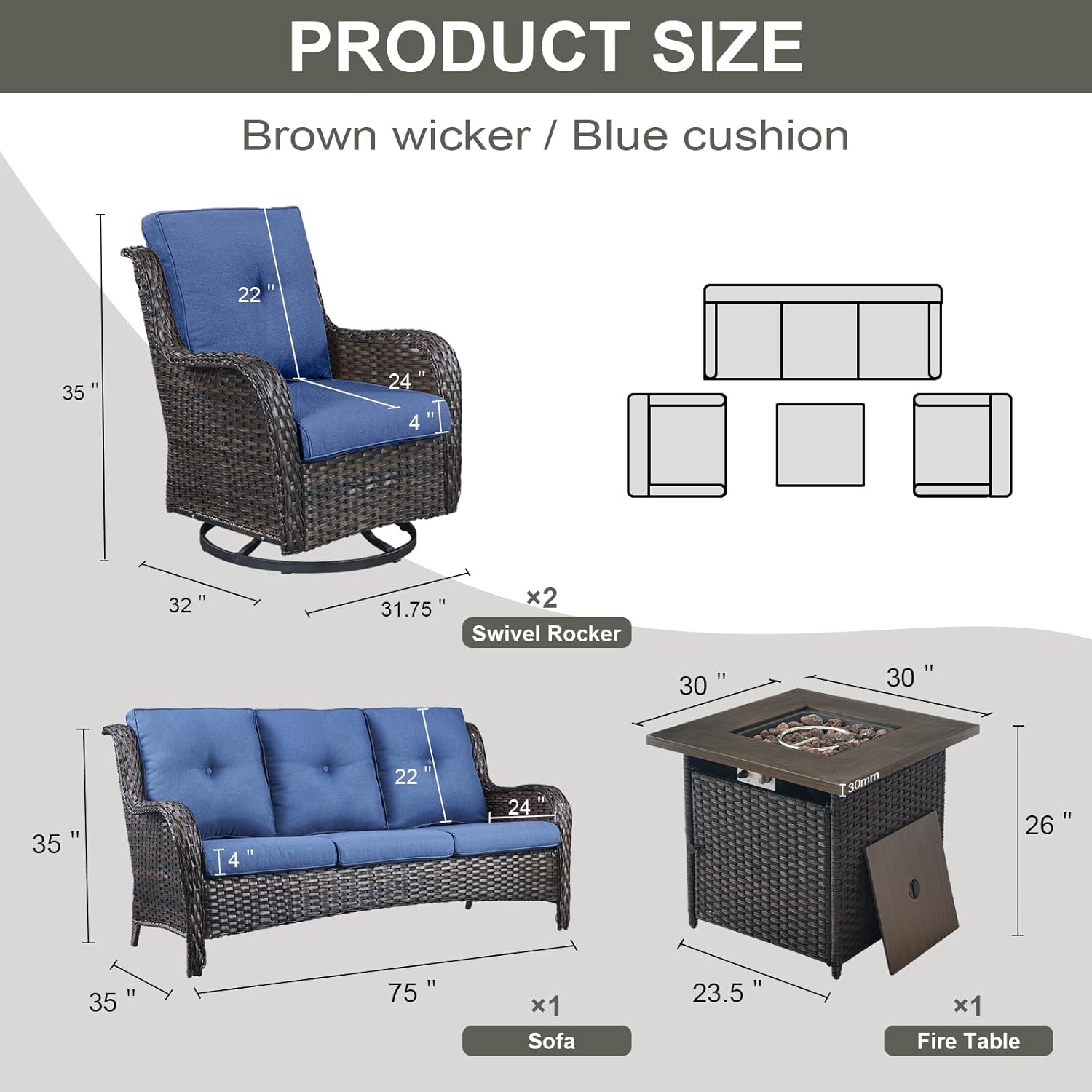 - Color : Brown Wicker / Blue Cushion