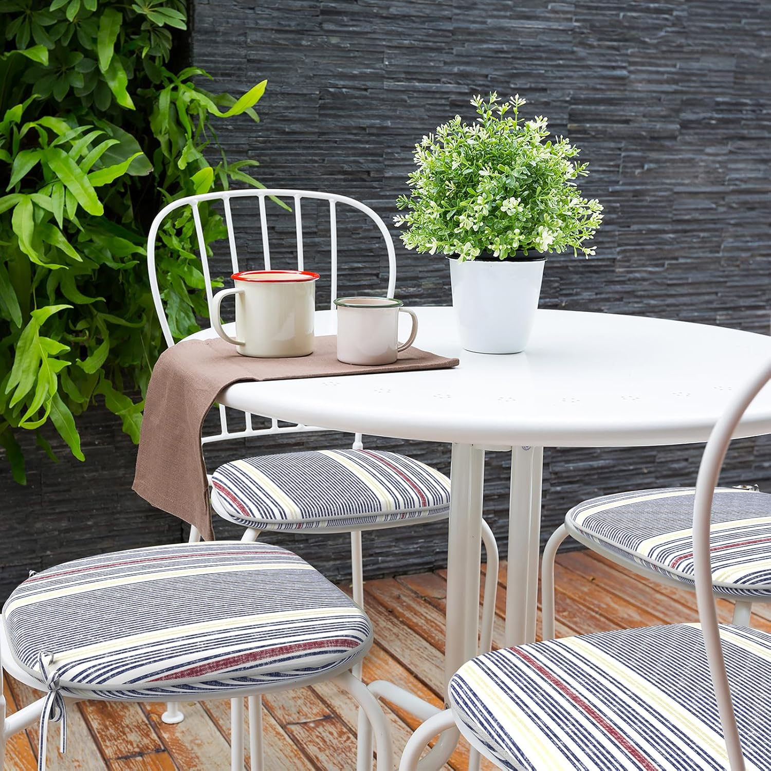 Indoor/Outdoor Chair Cushions 16x17 Inch, Patio Chair Cushions with Ties, All Weather Seat Cushions for Patio Furniture Home Garden Chair Use, Set of 2, Stripe Denim Blue