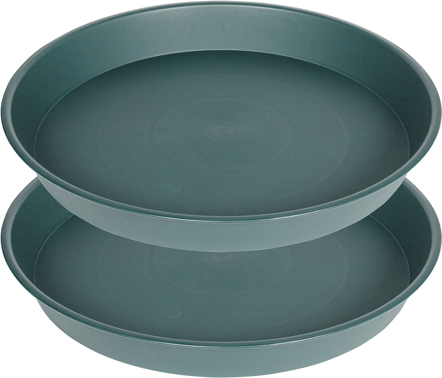 2 Pack of 14 inch Plant Saucer (12.2 Inch Base), 1.7" Depth Tray, Large Deep Garden Plastic Flower Planter Plant Trays for Indoors Outdoor Bath Bath (14", Green)