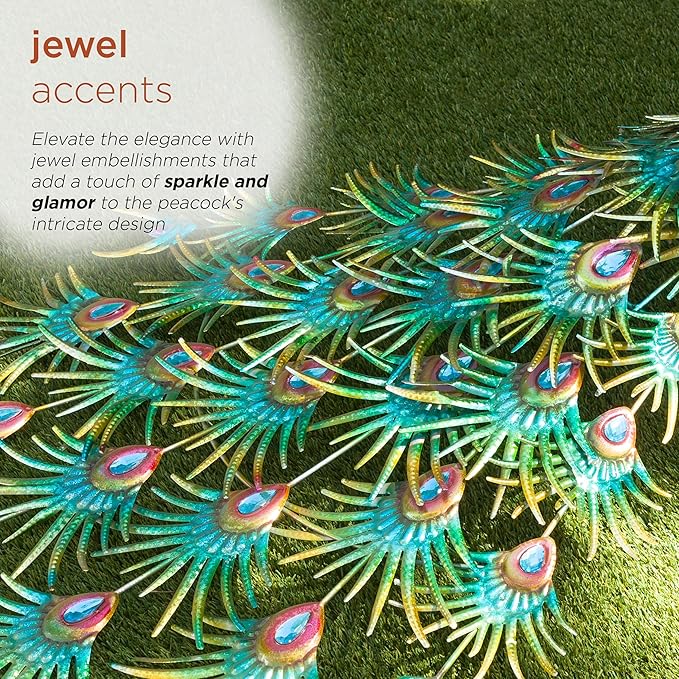 - STUNNING METAL PEACOCK STATUE: Bring an air of majesty to your space with this peacock statue, featuring its gorgeous feathers trailing behind it