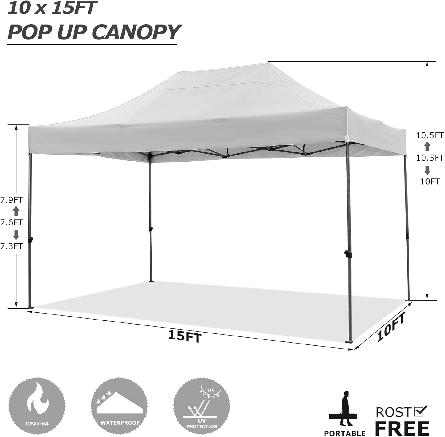 - 【Package Includes and Service】COBIZI 10x15 Pop up Canopy Includes: 1x Canopy poles+1x Canopy Roof Fabric+1x Carry Bag +4x Wind Ropes + 8 Stakes. If you have any questions during use, please feel free to contact us, we will provide satisfactory service
