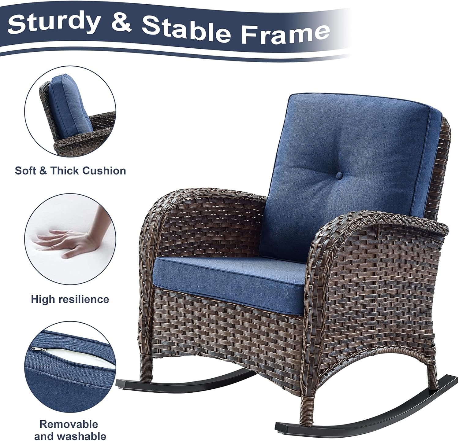 - Ergonomic Design:Added more comfortable support with the ergonomic high backrest and wide armrests design.Deep and wide seats with 4-inch thick sponge-padded cushions.Offers good resilience, not easy to deform or slide,for relaxing lumbar and added comfort and coziness.