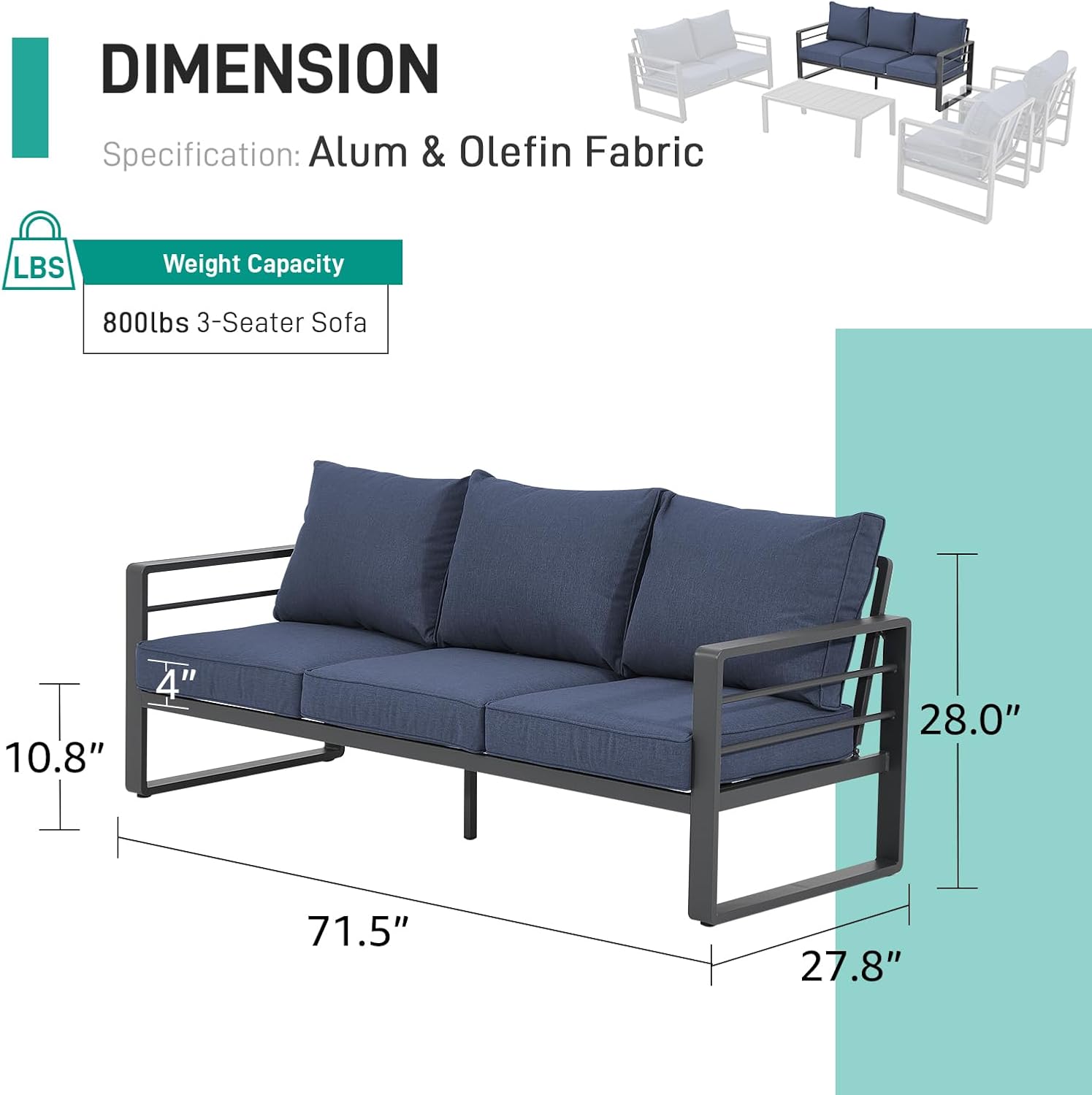 - [Oversized Couch Set]: Dimension: loveseat: 49.2”W x 27.8” D x 28.0”H. Seat Height (with cushion): 15”. Individual Loveseat Weight Capacity: 600 lbs. With straight-forward, easy-to-follow assembly instructions, you’ll be relaxing with your beverage of choice in your new favorite outdoor living space for years to come.