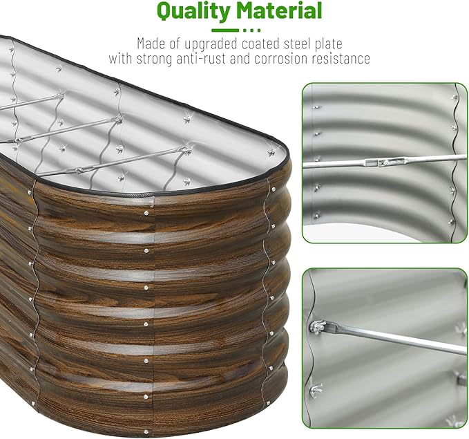 - EASY ASSEMBLY: Our oval garden bed with user manual and tools allow you to easily assemble within a short time, along with heavy duty rubber edging to cover the edges providing protection from injury.