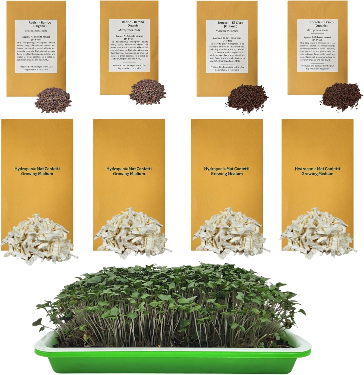 Home Microgreens Kit Refill - Hydroponic Growing Medium - Premeasured for 4 plantings; Includes Non-GMO Organic Broccoli and Radish Seeds for 4 Harvests