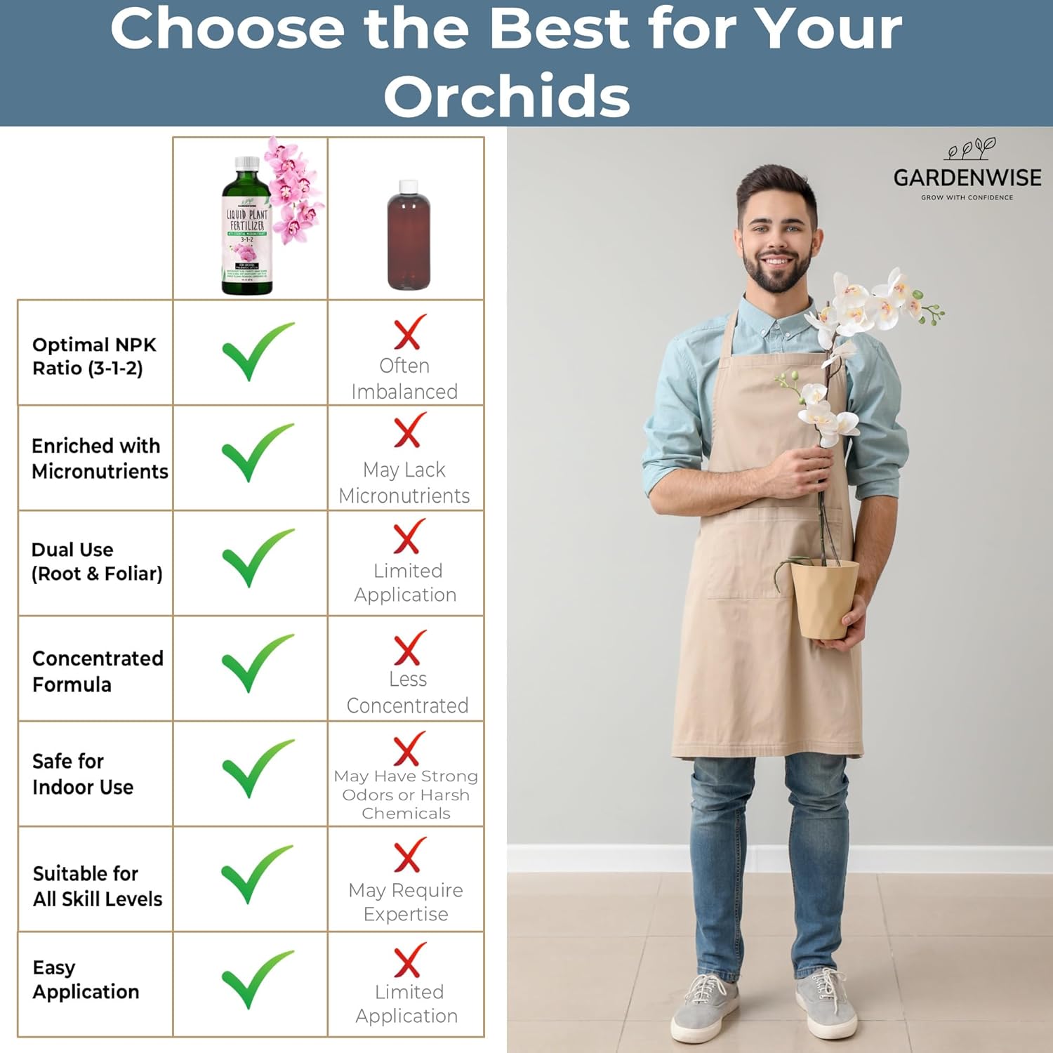 - 🌸 3-1-2 NPK Formula & Micronutrients – Tailored for orchids, this orchid fertilizer delivers balanced nutrition to meet their unique growth needs.