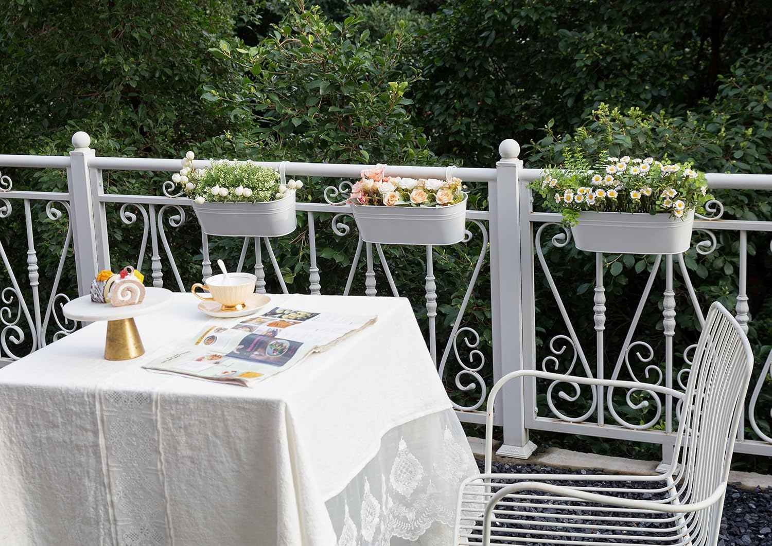 Dahey 3 Pcs Metal Iron Hanging Flower Pots for Railing Fence 15.7 Inch Hanging Bucket Pots Countryside Style Window Flower Plant Holder with Detachable Hooks for Garden Yard Home Decor, White
