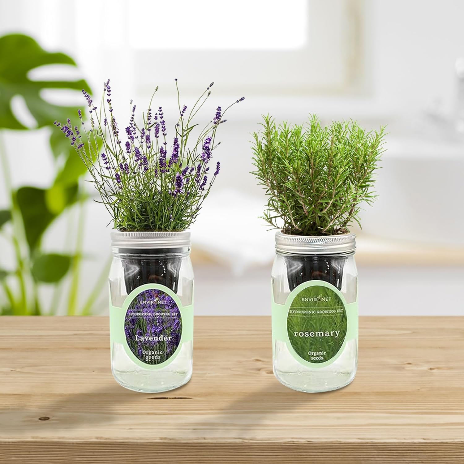 2-Pack Hydroponic Mason Jar Herb Garden Kit, Indoor Herb Garden Self-Watering Starter Kit (Dill,Lavender)