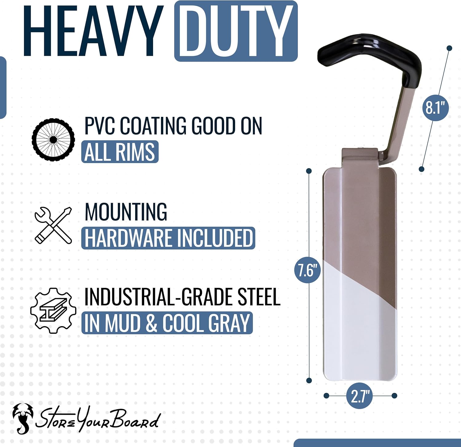 - HEAVY-DUTY PERFORMANCE – Crafted from powder-coated steel and built to last, each bicycle hanger holds up to 50 lbs of bike weight. The rubber-coated bike hook is gentle on rims, including carbon, and helps prevent scratches or damage. No plastic parts, just solid, welded construction built for long-term indoor bike storage.