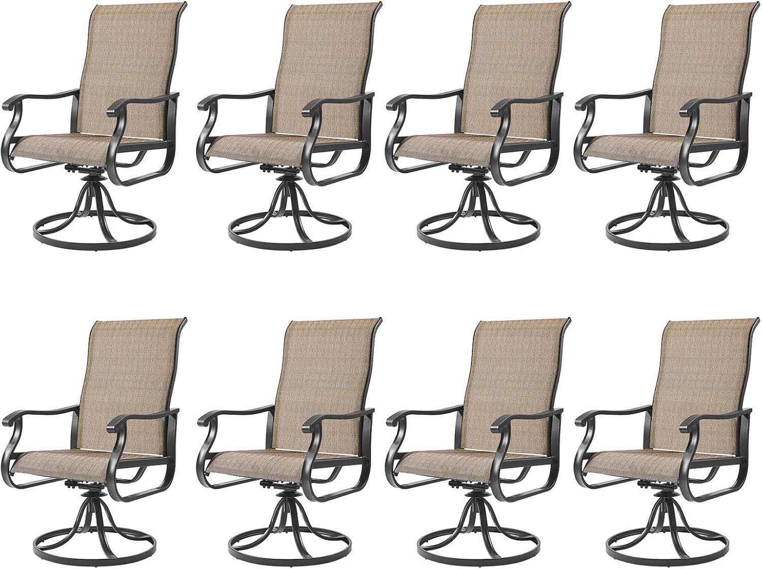 Amopatio Patio Swivel Chairs Set of 8, Outdoor Swivel Rocker Dining Chairs with All Weather Textilene High Back & Metal Frame, for Backyard Deck Lawn Garden, Brown