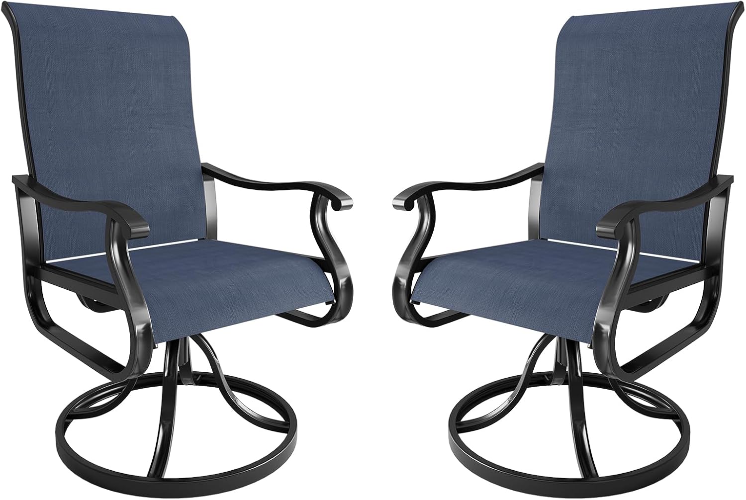 Amopatio Patio Swivel Chairs Set of 2, Outdoor Swivel Rocker Dining Chairs with All Weather Textilene High Back & Metal Frame, for Backyard Deck Lawn Garden, Navy Blue