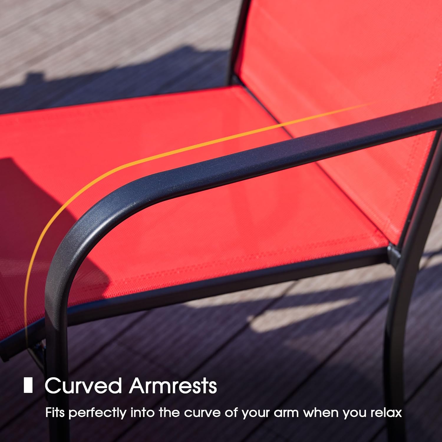 - 【Patio Stackable Chairs】 Slight lawn chairs are stackable for space-saving and portability. Breathable patio chairs feature good airflow, UV, fade, and stain-resistant, comfortable to sit in the courtyard or garden on a hot summer day