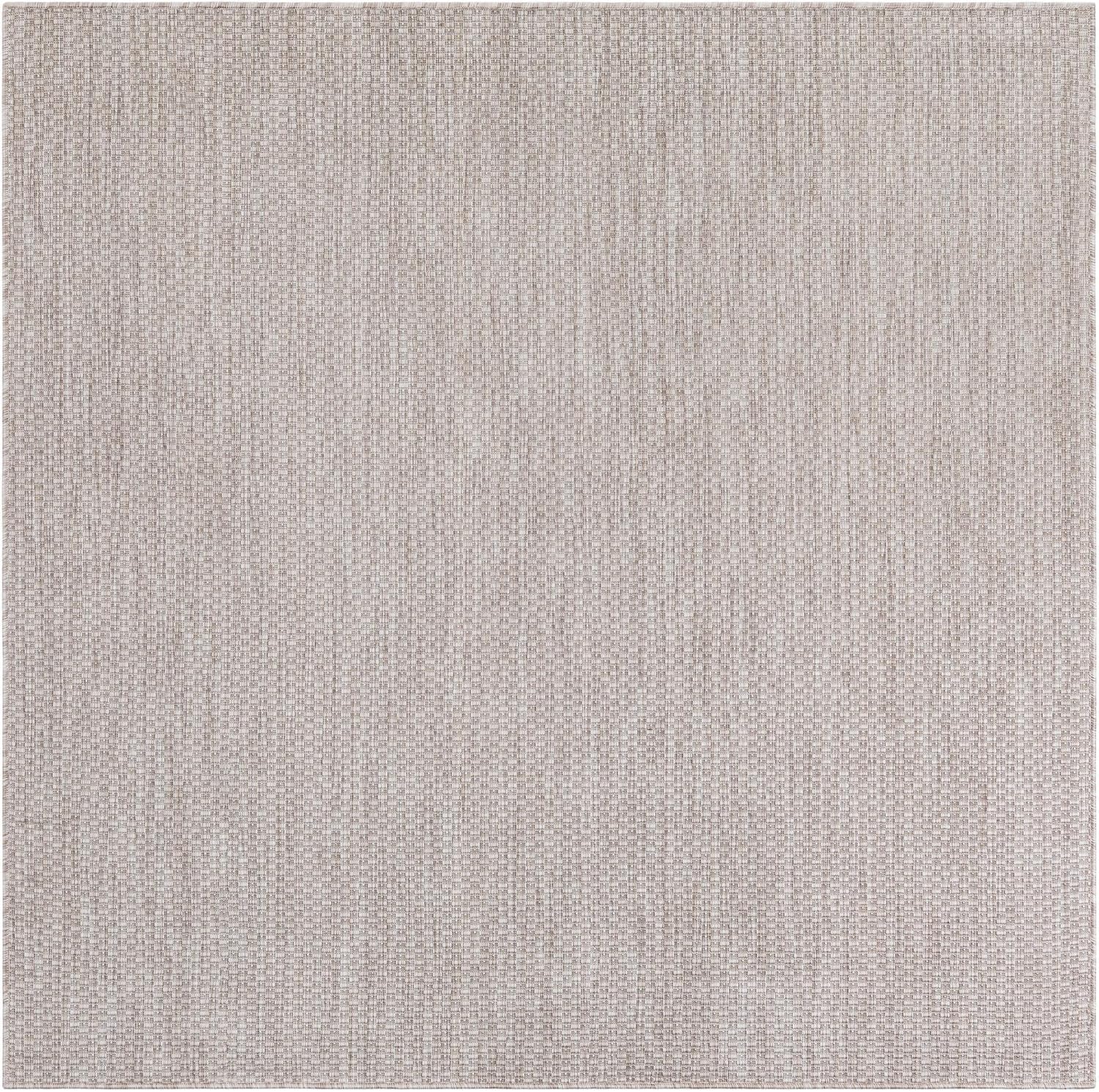 Unique Loom Outdoor Solid Collection Area Rug (6' 1" Square Beige/Ivory)