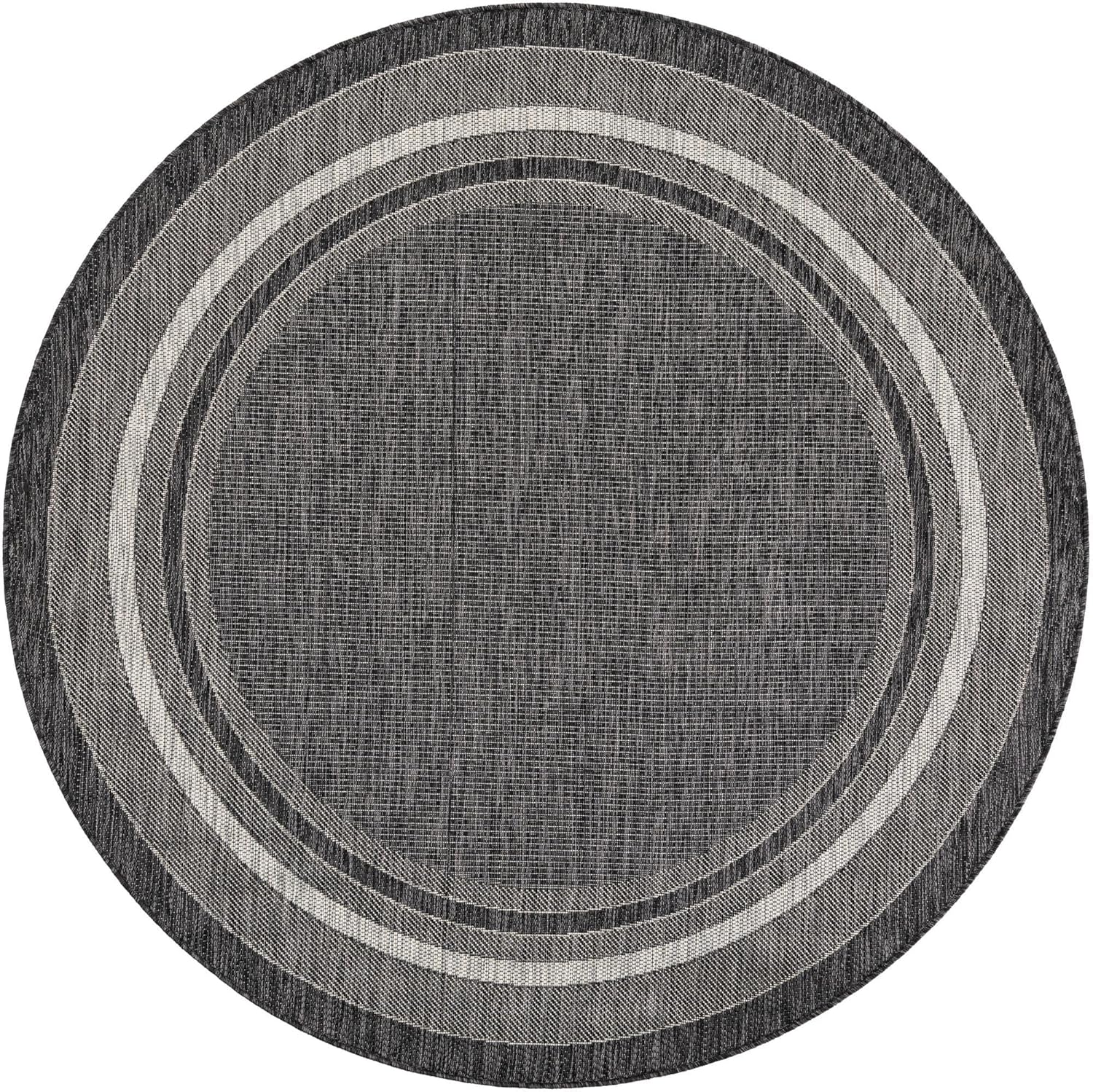 Unique Loom Outdoor Border Collection Area Rug - Soft Border (6' 1" Round Black/Ivory)