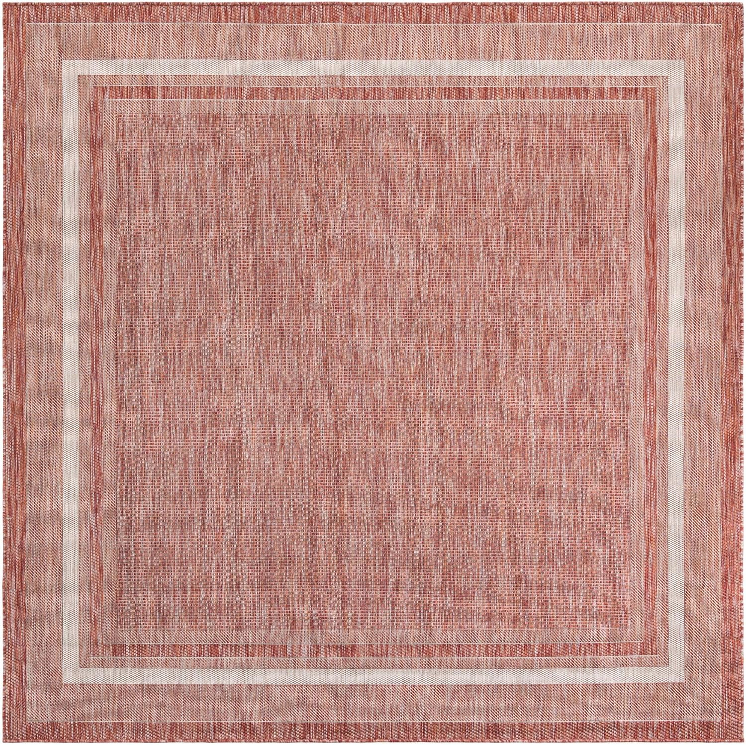 Unique Loom Outdoor Border Collection Area Rug - Soft Border (7' 10" Square Rust Red/Ivory)