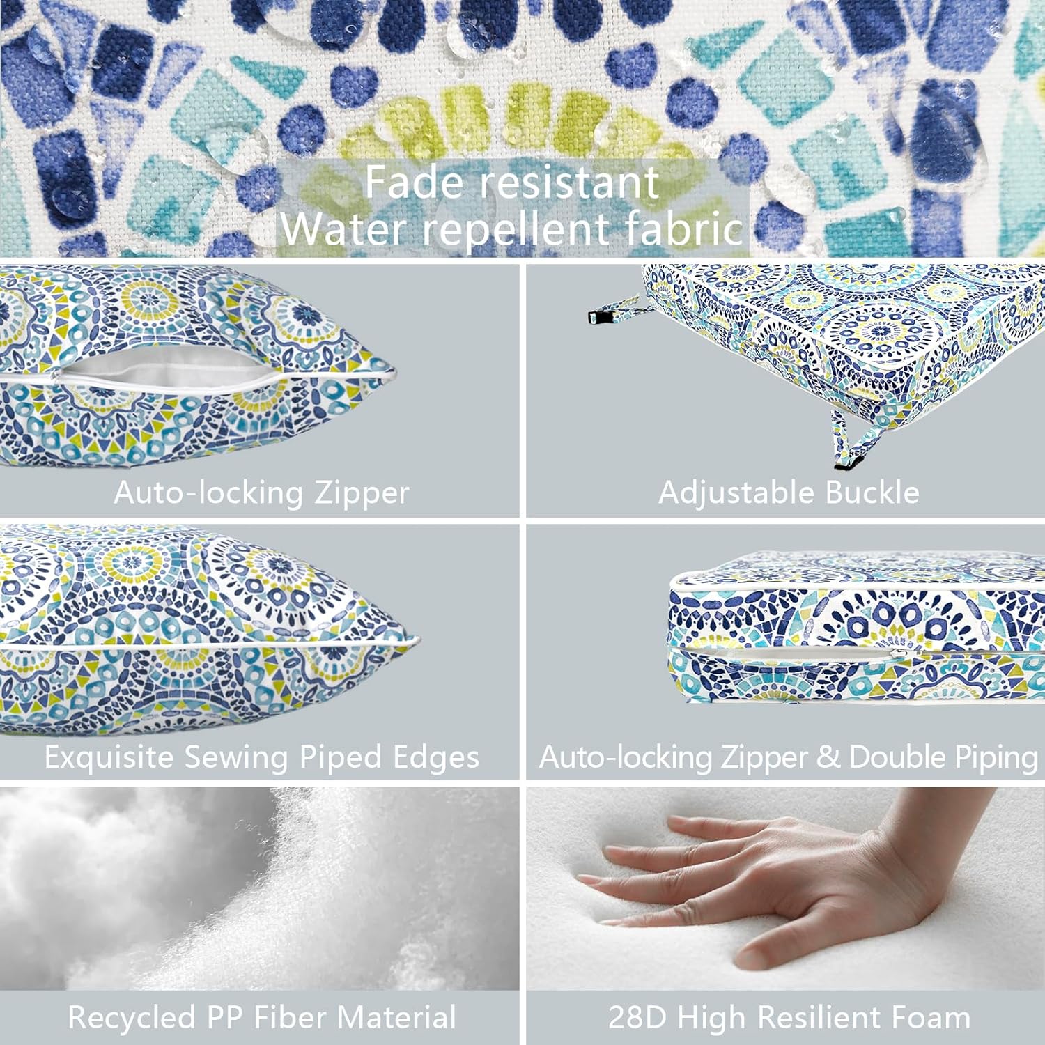 LVTXIII Outdoor Deep Seat Cushion Patio Seat and Back Cushion Set Seasonal Chair Cushion with Removable Cover and Adjustable Buckle for Home and Garden, 24"x24"x4", Delancey Lagoon