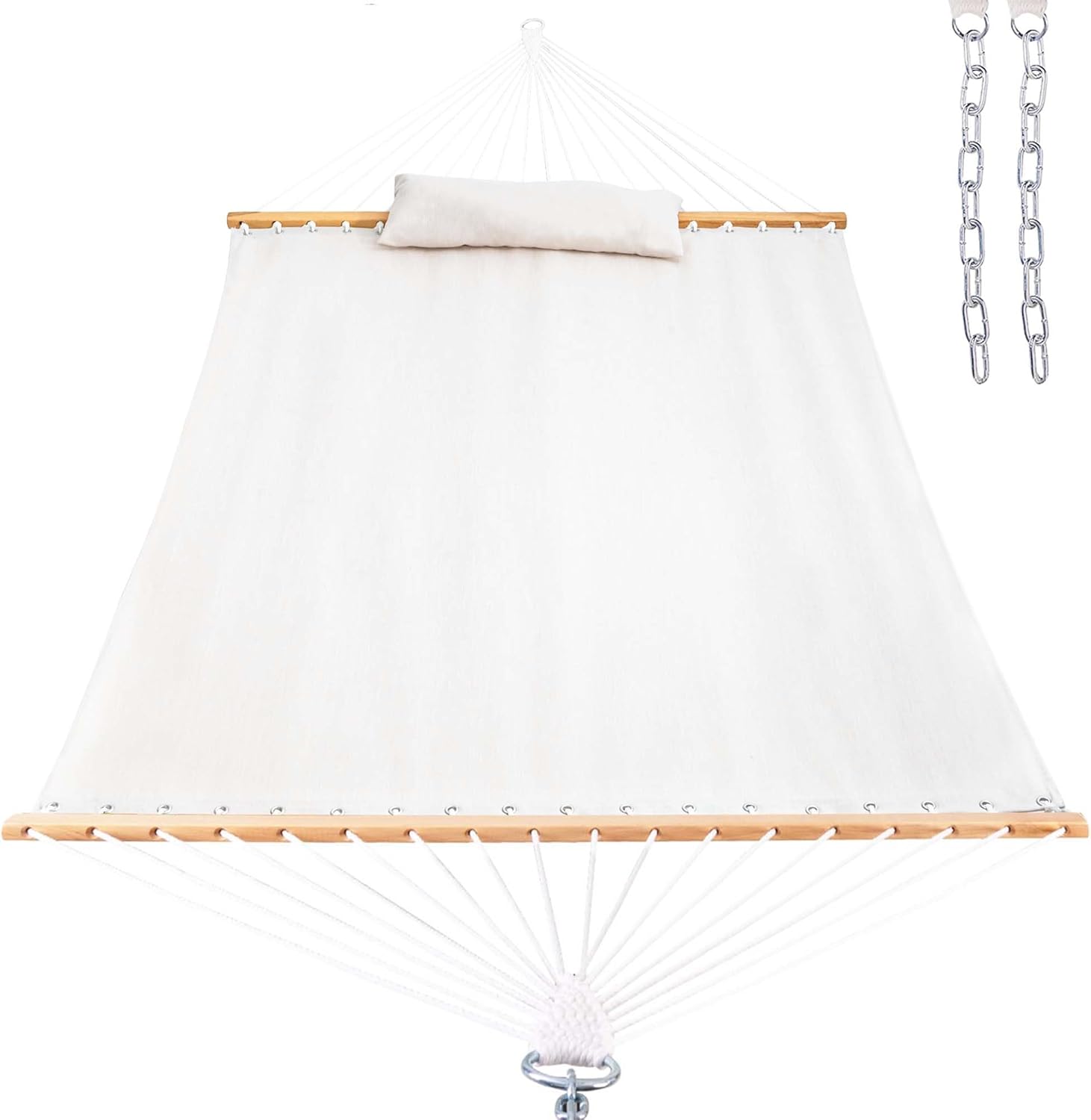 Lazy Daze 12 FT Sunbrella Fabric Hammock not Fading with Spreader Bars and Free Pillow Fits for Two Persons, All Weather and Fade Resistant for Patio Yard, 450 lbs Weight Capacity,Cast Pumice