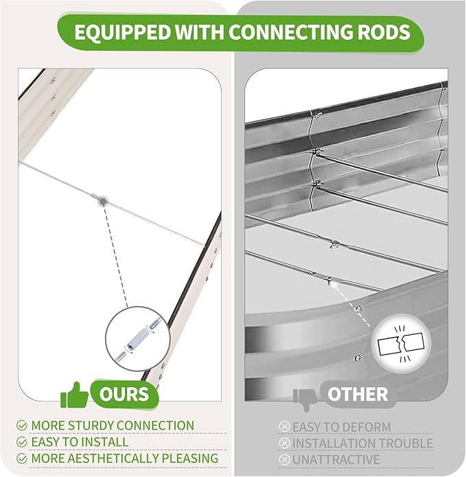 - 【Double Reinforced Connecting Rods】The 8x2x1FT large raised beds for gardening provide enough space to grow the vegetables you want. There are two rotating support rods in the middle, There are two rotating support rods in the middle, which are easy to install and used to reinforce and stabilize your plant box.