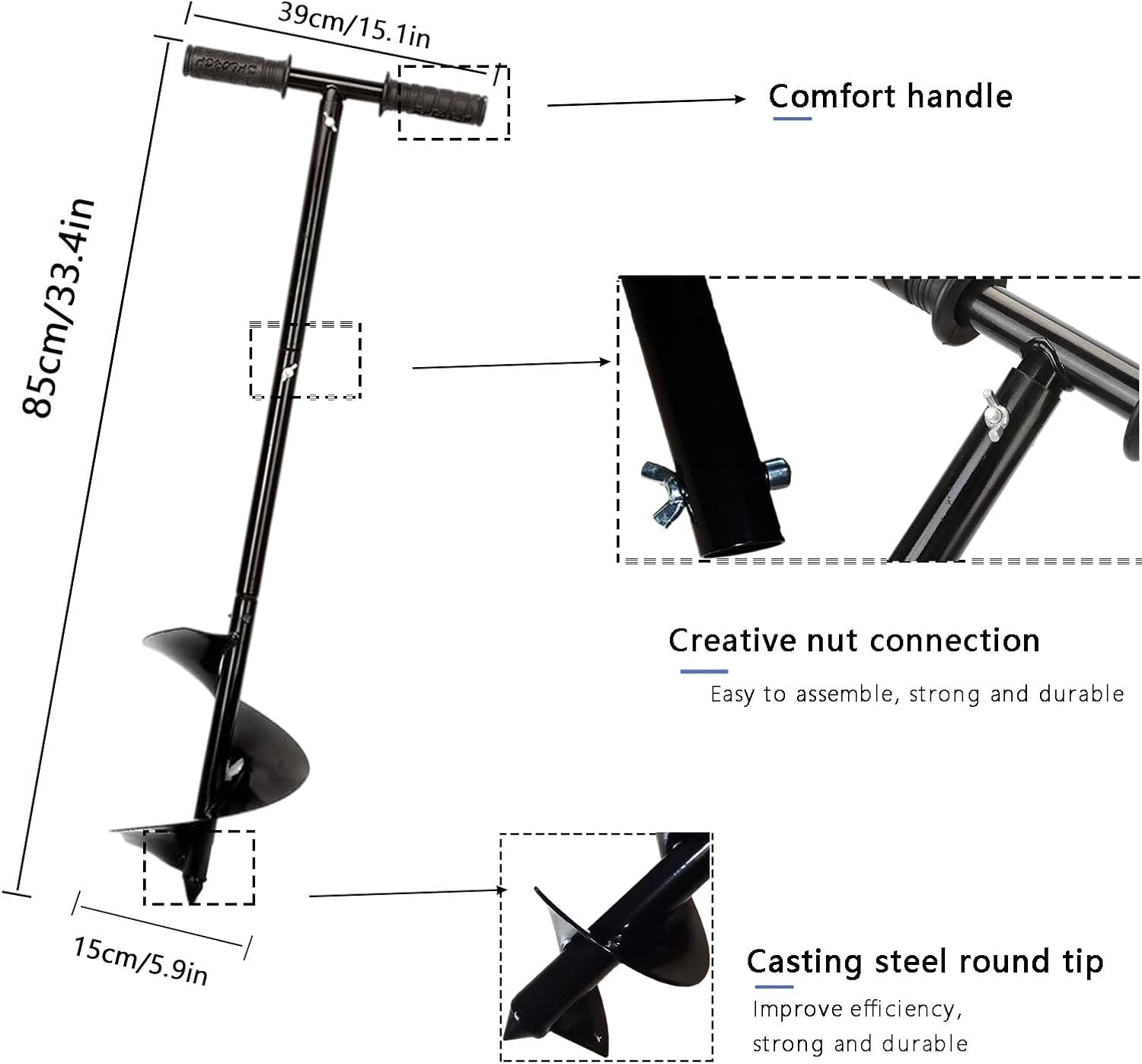 - High Quality Material:This compost turner and mixing tool is made of high quality steel, which is strong, durable, suitable for use in various environments.Easily works through vines and other troublesome ingredients.