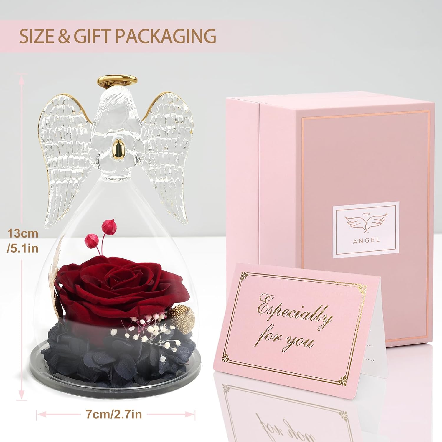 - The package contains 1x Angels Rose, 1x Protection Gift Box and 1x Greeting card.