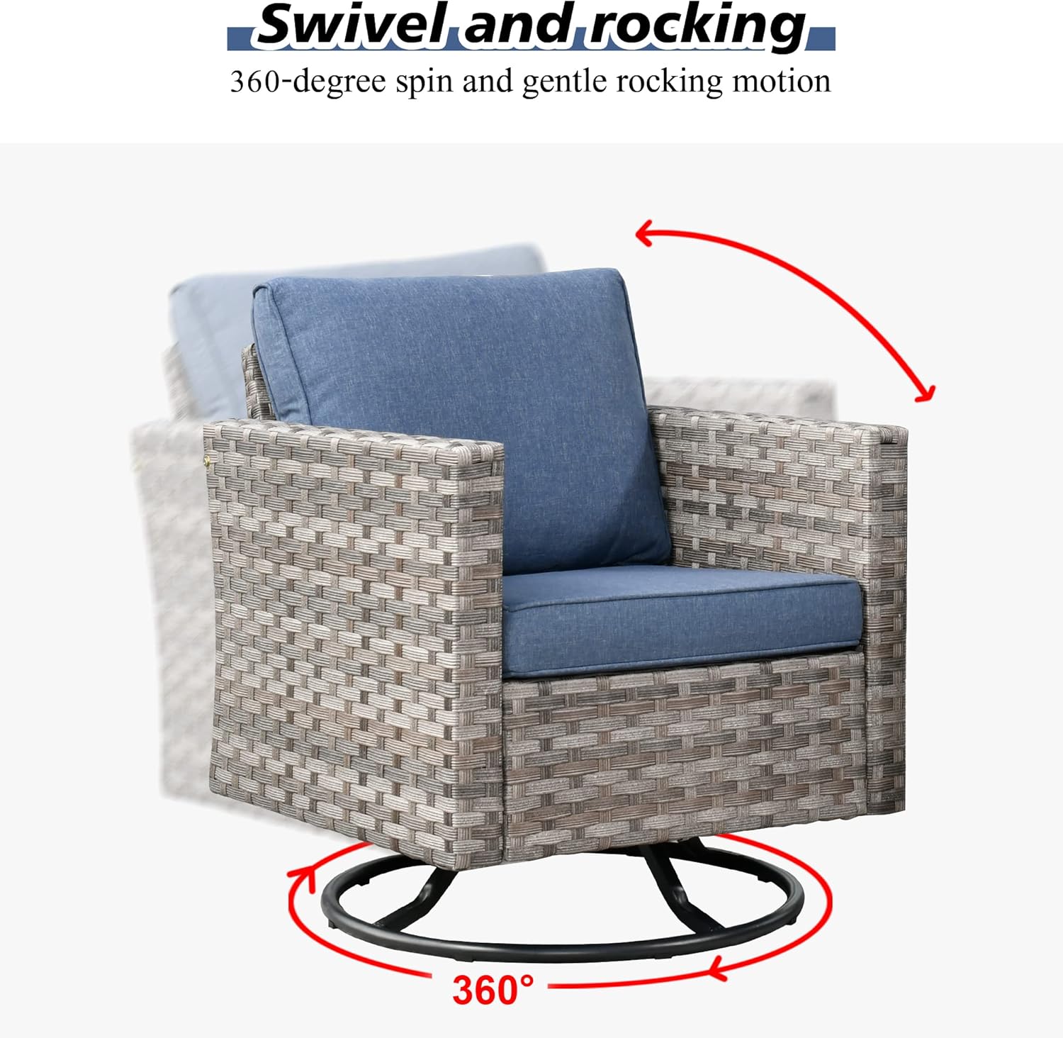 HOOOWOOO 9 Piece Modular Patio Outdoor Sectional Furniture Set with Large Propane Fire Pit Table,Wicker Conversation Sofa Set with Swivel Chairs,Outside Couch Set(Denim Blue)