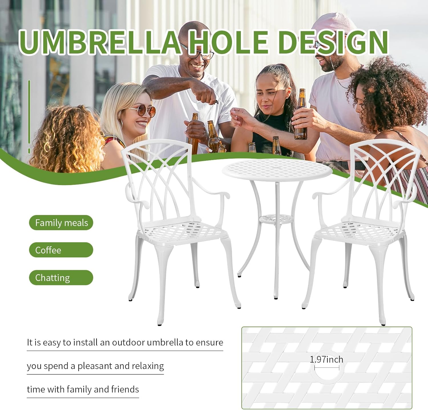 Bistro Table and Chairs Set of 2 for Garden, Bistro Set 3 Piece Outdoor, Cast Aluminum Patio Funiture Set, With Armrest