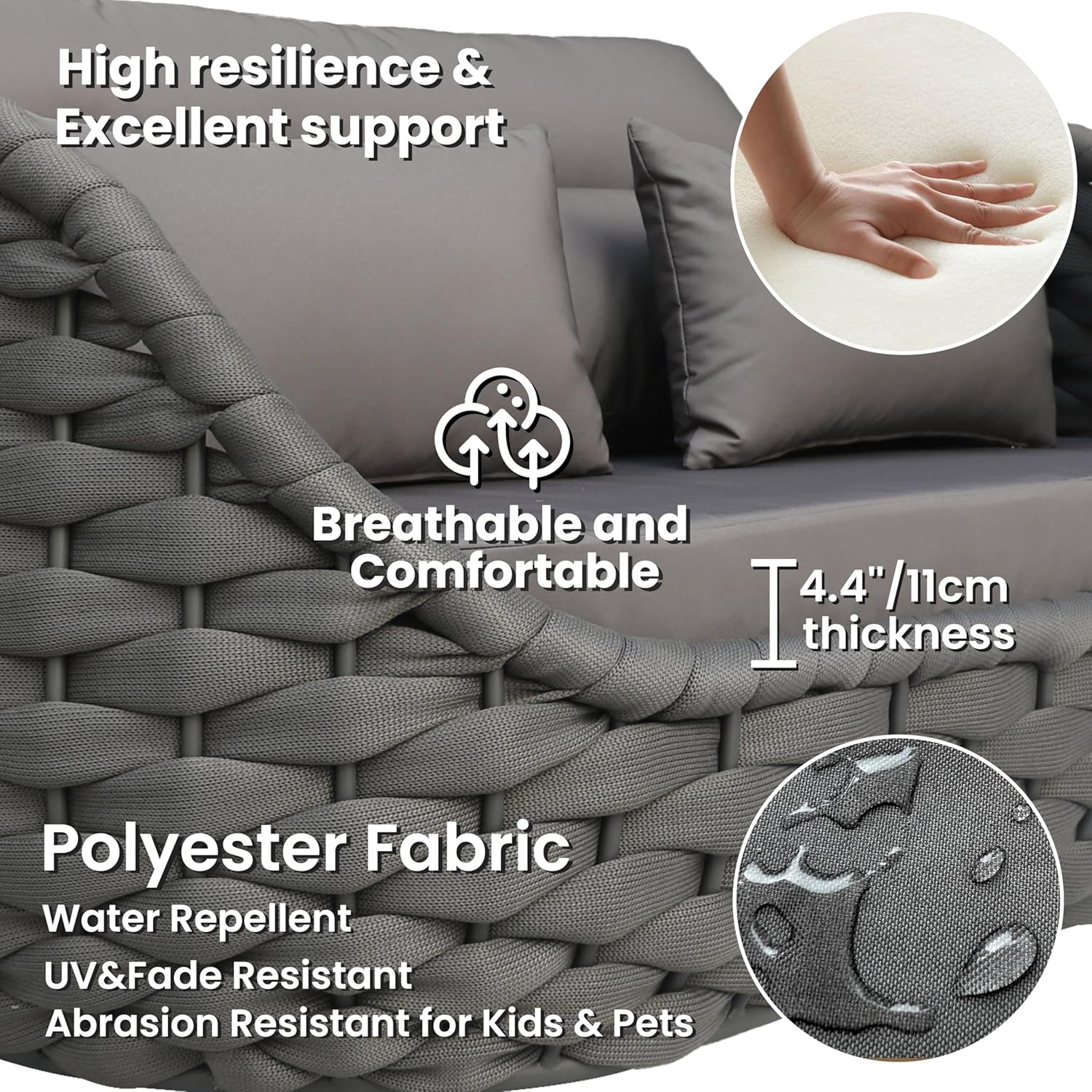 - Patio Set for outdoor Use : Crafted with heavy-duty rust-free aluminum frame, the Erotr outdoor furniture set is wrapped in handwoven polyester braided ropes that resists sun's UV, abrasion, and fading for outdoor and indoor long-lasting durability