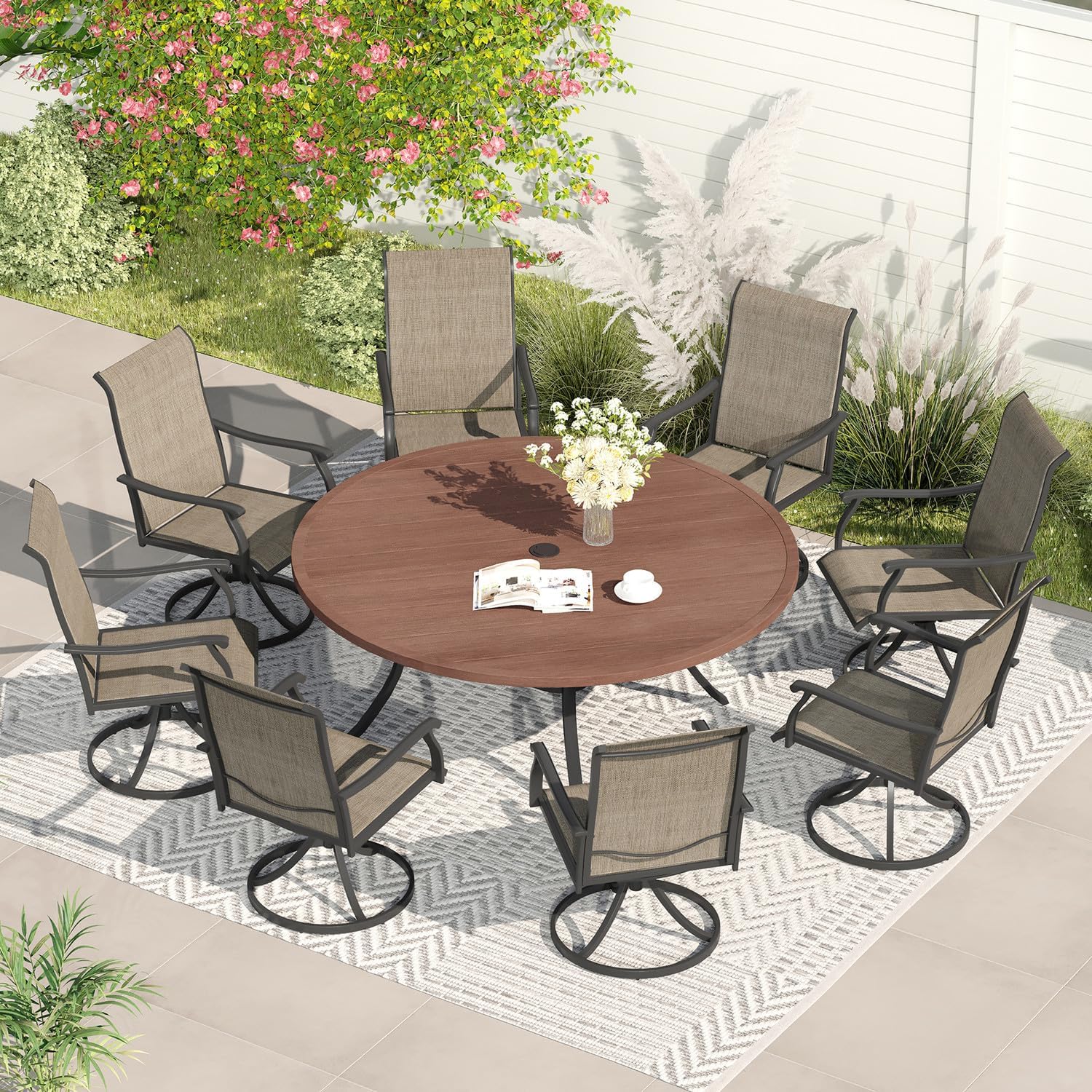 VICLLAX 53" Outdoor Round Patio Table for Lawn Garden, All Weather Metal Round Patio Dining Table with Adjustable Umbrella Hole, Patio Table for 8 Person, Walnut Tabletop