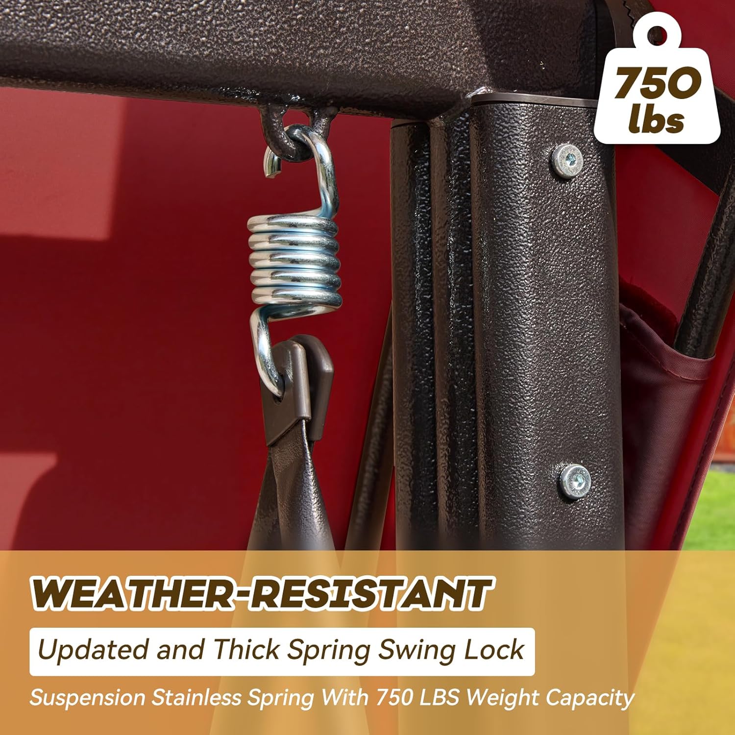 • 【Sturdy and Safe Construction】: The maximum weight capacity of porch swing is 750 pounds, our glider swing is designed for 3 adults to sit comfortably. The swing outdoor has a reliable buckle on backrest, ensuring stability and preventing any unwanted swinging. The double protection of 3 seat garden swing is designed for preventing accidental tipping.