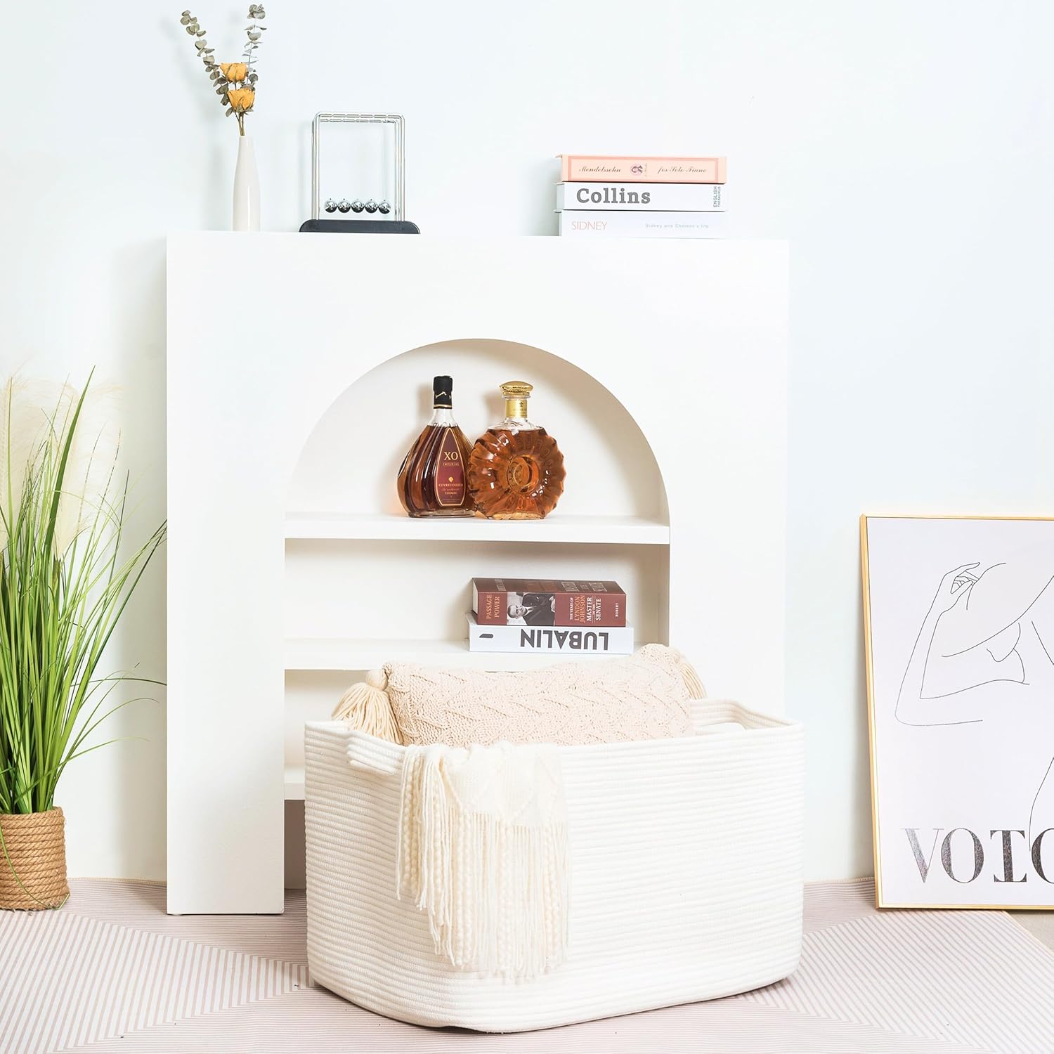 - Decorative Storage Baskets for Home Decor - A stylish, practical alternative to other boring storage solutions. Not only will our large storage baskets help you get organized, their sleek, sophisticated shape and neutral colors will complement any decor and any room: the bathroom, playroom, bedroom, living room, laundry room, mudroom, home office, entryway & more.