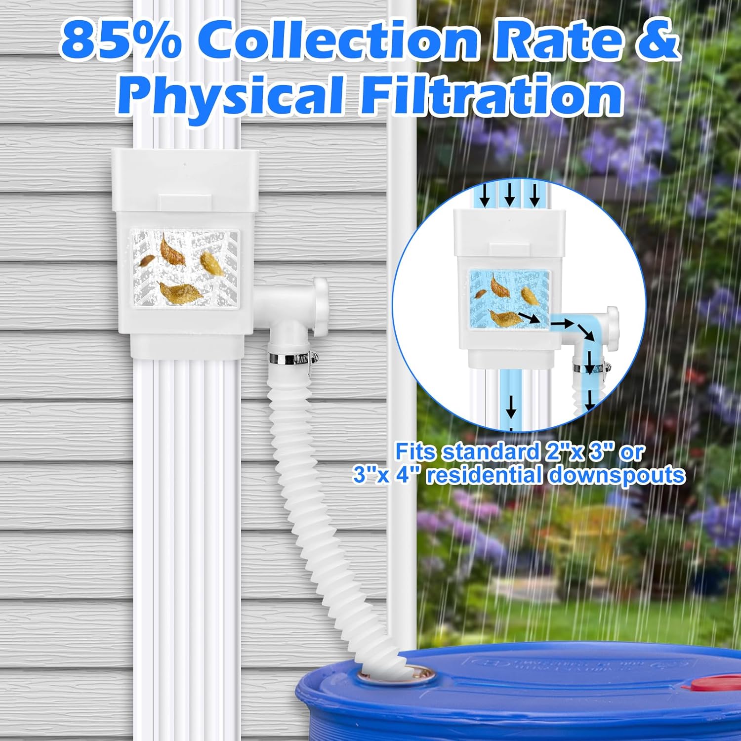 - Compatibility: Fits standard 2"x 3" or 3"x 4" residential downspouts. Please install the rain water catching system 18 inches above the rain barrel.