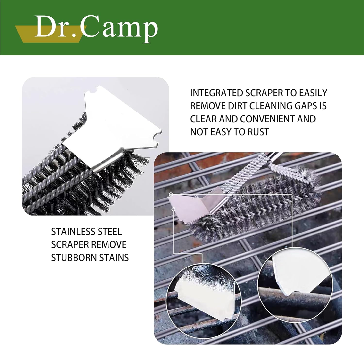 - 🔥 2 PCS Stainless Steel Grill Brush: Our grill brush set includes 2 stainless steel brushes, each measuring 17.5 inches in length. The brushes have a sturdy stainless steel handle with a comfortable non-slip silicone grip, making them easy to hold and use.