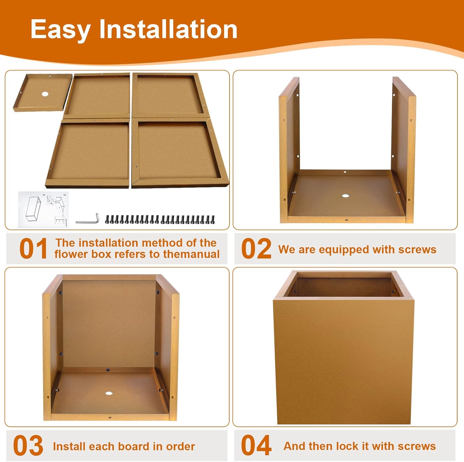 - 【Easy to Assemble】: The installation method of the flower box refers to the manual. We are equipped with screws, install each board in order, and then lock it with screws