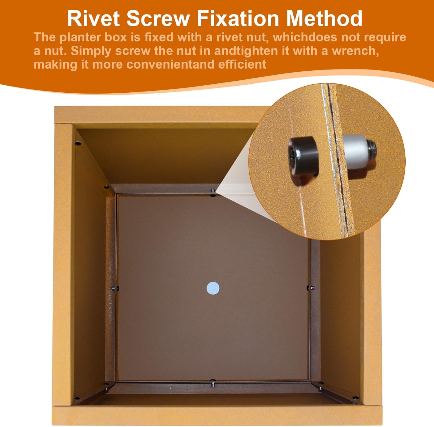 - 【Rivet Screw Fixation Method】: The planter box is fixed with a rivet nut, which does not require a nut. Simply screw the nut in and tighten it with a wrench, making it more convenient and efficient