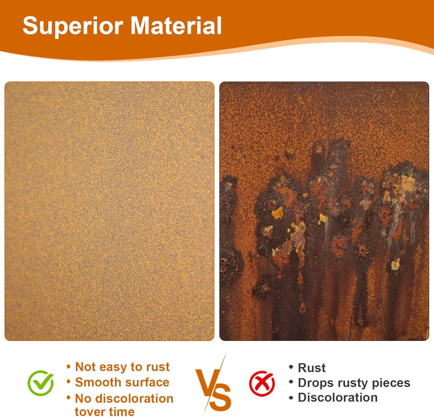 - 【Heavy-Duty Corten Steel】: Weathering steel will form a layer of iron rust effect on the surface after special process, which can protect the internal material from corrosion again, and at the same time, it has good oxidation resistance and corrosion resistance, thus prolonging the service life. Due to the design of its surface simulation of iron rust, no regular painting maintenance is required, and the maintenance cost is lower compared with ordinary steel, it should be noted that you need to wear gloves in the process of use