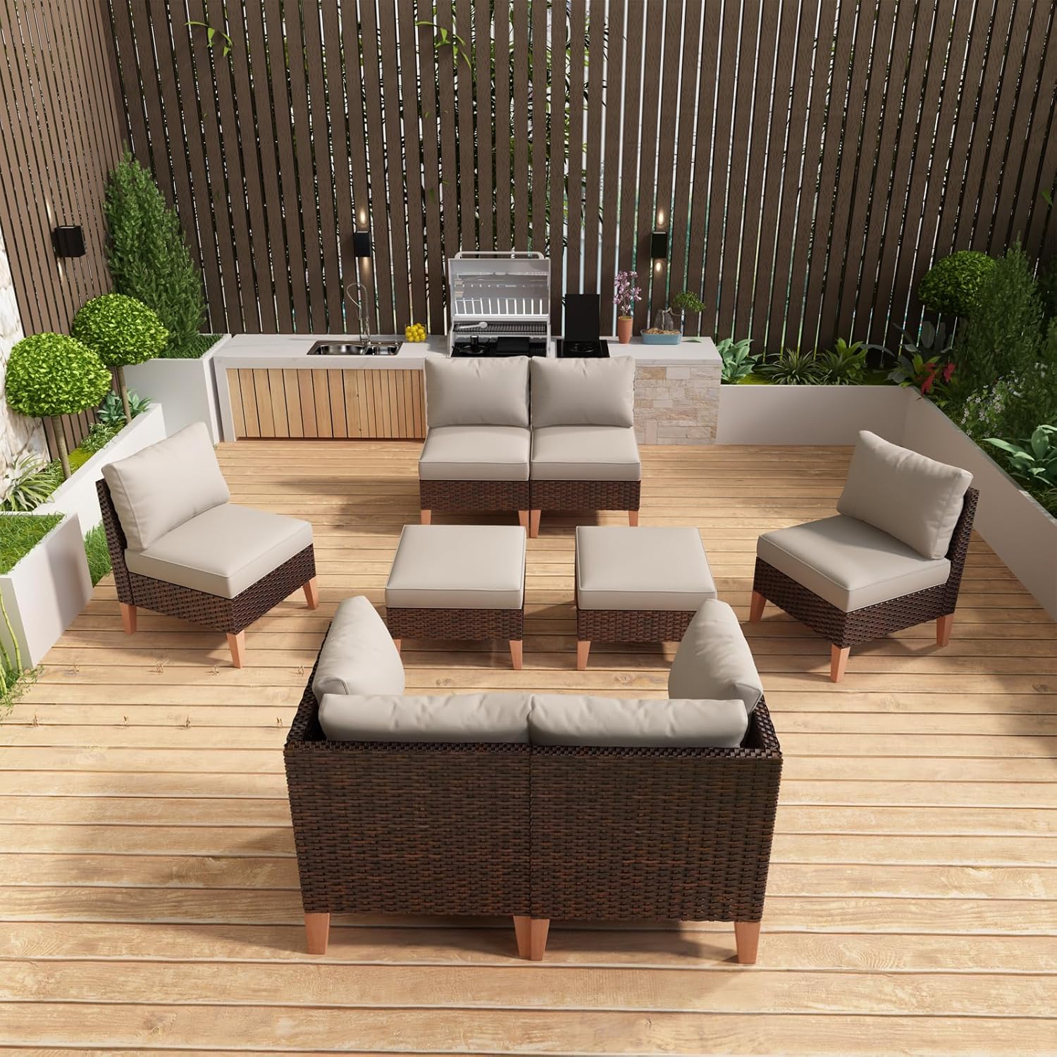 - Free Combination:Our patio furniture set includes individual chairs, corner chairs, and curved double seat sofas and ottomans. you can freely combine these products to meet your needs and space size.Any quality problem please contact us for replacement.