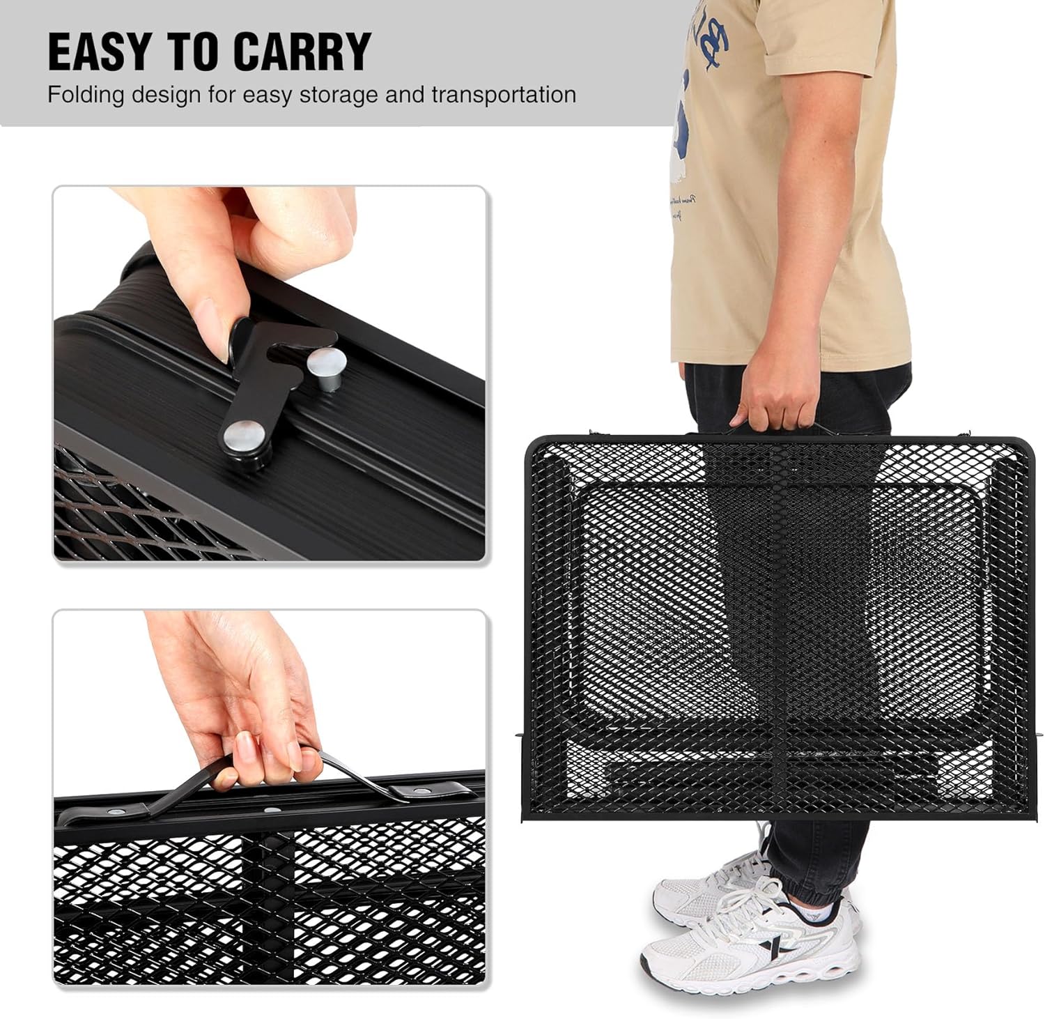 - [Premium Material&Design]This aluminum grill table is made of powder coating iron mesh (table top) and thicker aluminum alloy frame (Diameter 25mm). It also has X-shape side support and secure latch to ensure stable use.