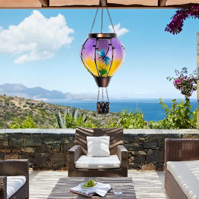 - 【Widely Used & Ideal Giift】Solar hot air balloon hanging garden light can be hung in the garden, back yard, balcony, porches, and other places. The unique dragonfly solar lantern makes an ideal, Mother's Day, Father's Day, Christmas or birthday giift for friends and family.