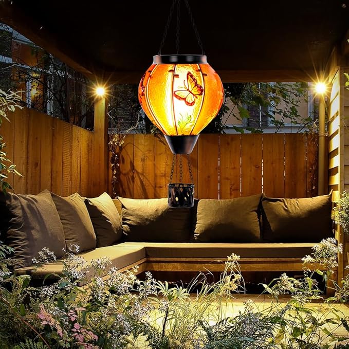 - 🦋【Wide Application】Butterfly solar hot air balloon flickering flame hanging garden light is a good outdoor or indoor decoration, you can hang the hot air balloon solar lamp on porches, trees, pergolas, balconies, or ledge.