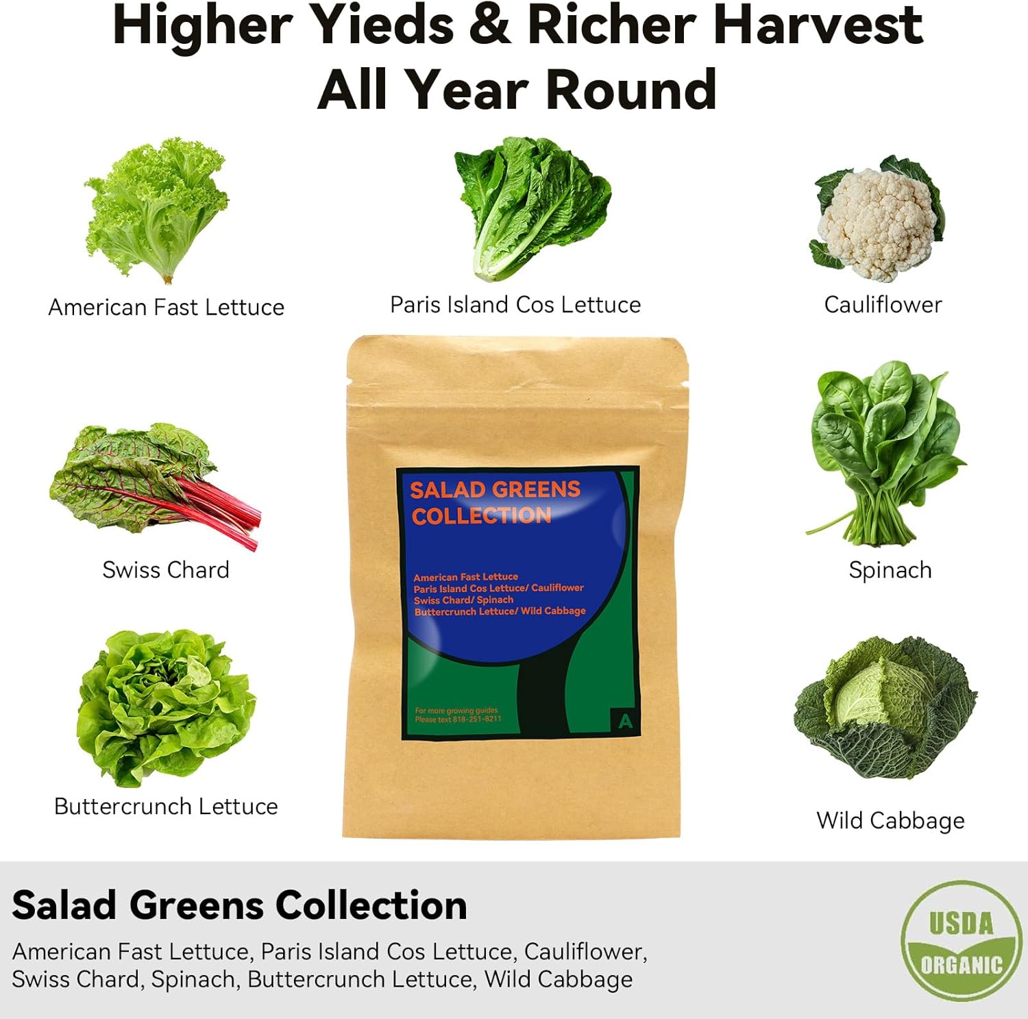 inbloom Salad Green Seed Pod Kit for AeroGarden, Ahopegarden, GARDENCUBE, MUFGA, 50 Pods (350+ Seeds with American Fast/Paris Island/Buttercrunch Lettuce, Swiss Chard, Spinach, Cauliflower, Cabbage)