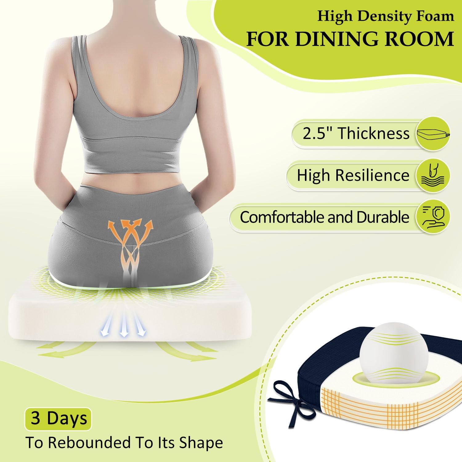 - High Density Foam:Crafted with 2.5 inch thick foam, these cushions deliver superior resilience and long-lasting support. The high-density foam contours to your body, relieving pressure during extended sitting while maintaining structural integrity for lasting comfort