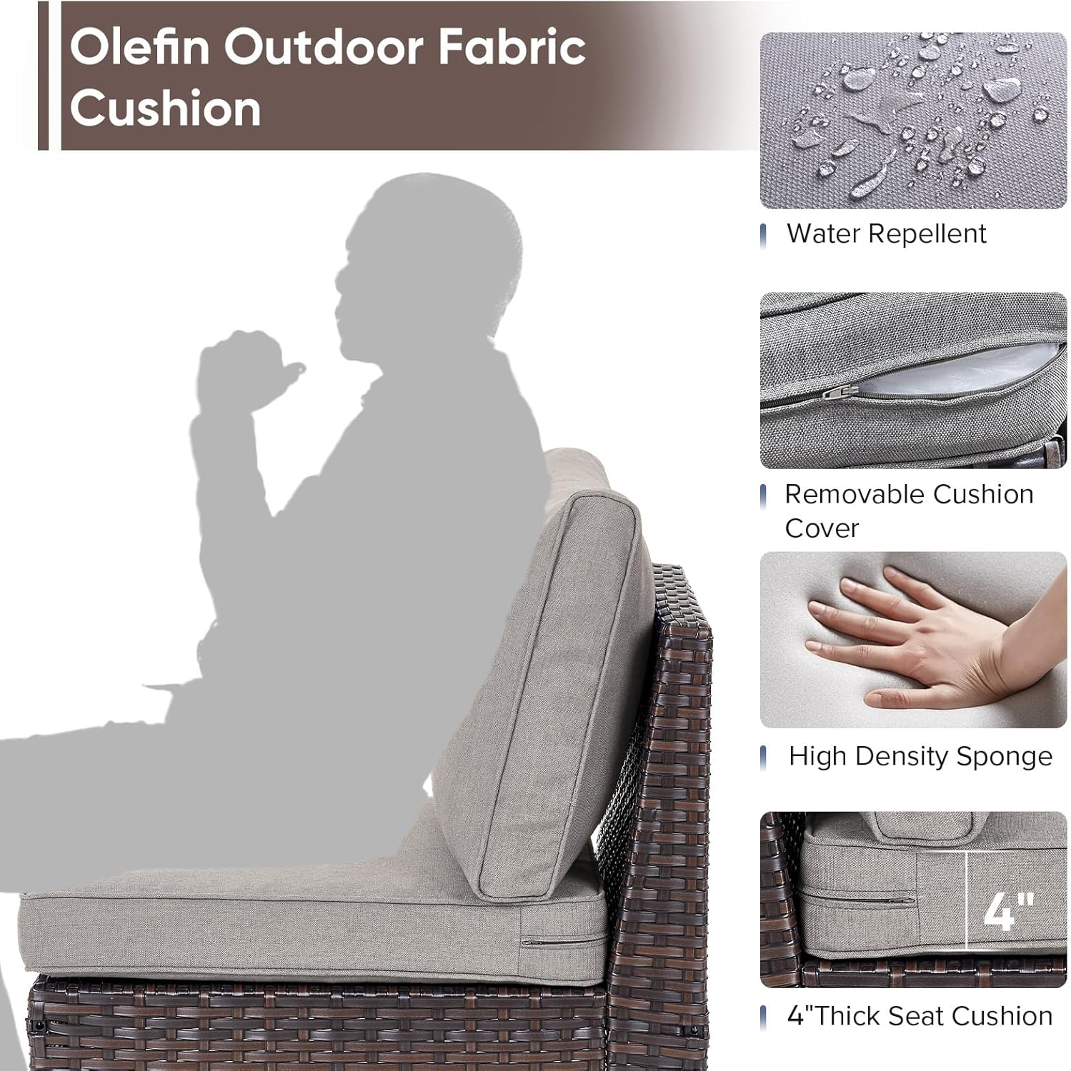 - Comfort Thick Cushions:Our cushions are made of high-quality olefin fabrics that provide excellent UV protection and water repellent function,Filled with a high-density 4" sponge to stay fluffy and non-deformation,Provide soft and comfortable seating experience, removable cover design is easy to clean.
