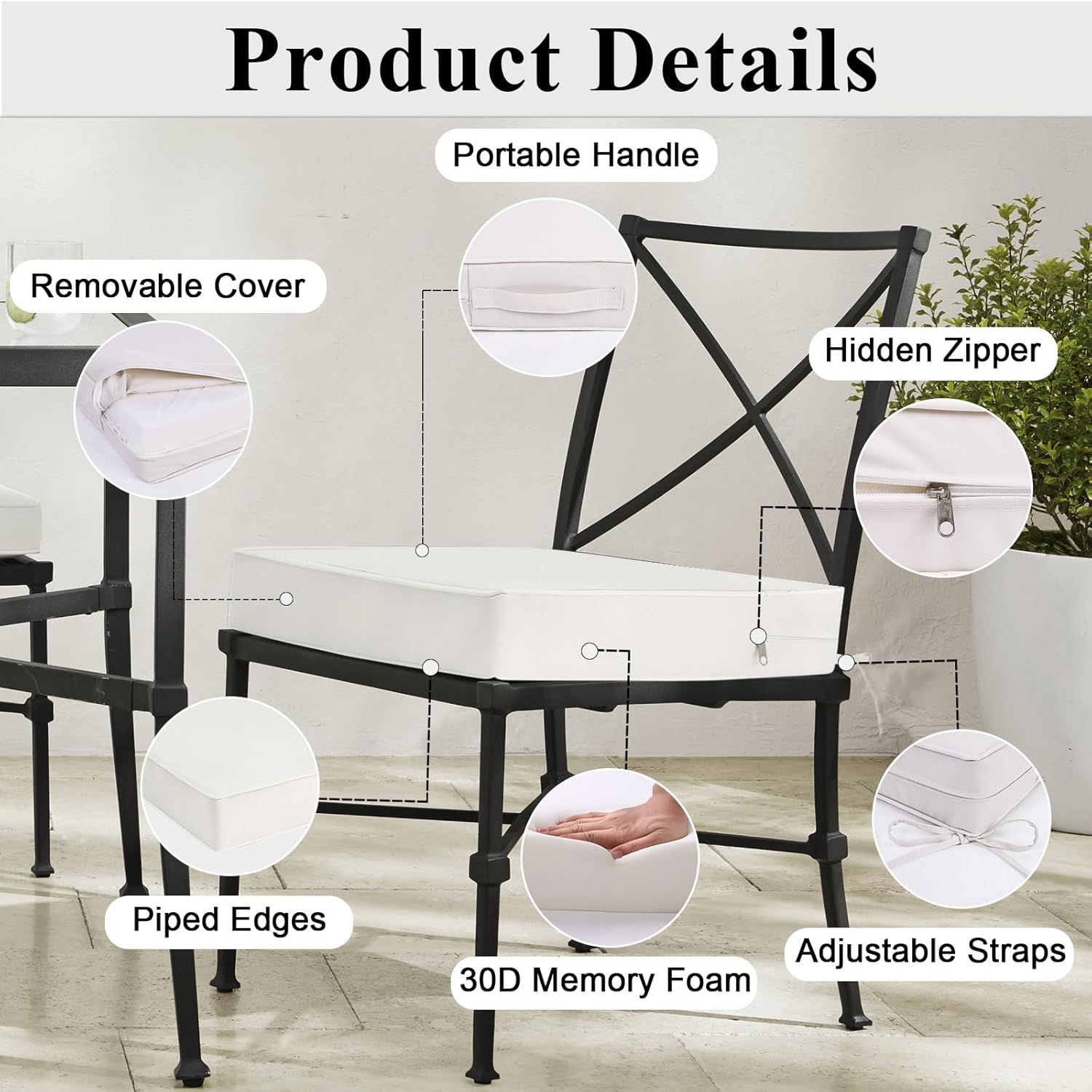 - PERFECT SIZE: Outdoor chair cushion set includes 2 cushions. Cushions measure: 24 inch (W) 24 inch (D) 4 inch (H). Fits most standard size outdoor chairs. Since the outdoor cushions are vacuum-packed, it may take 24-48 hours for the cushion foam to fluff back up after opening the vacuum bag