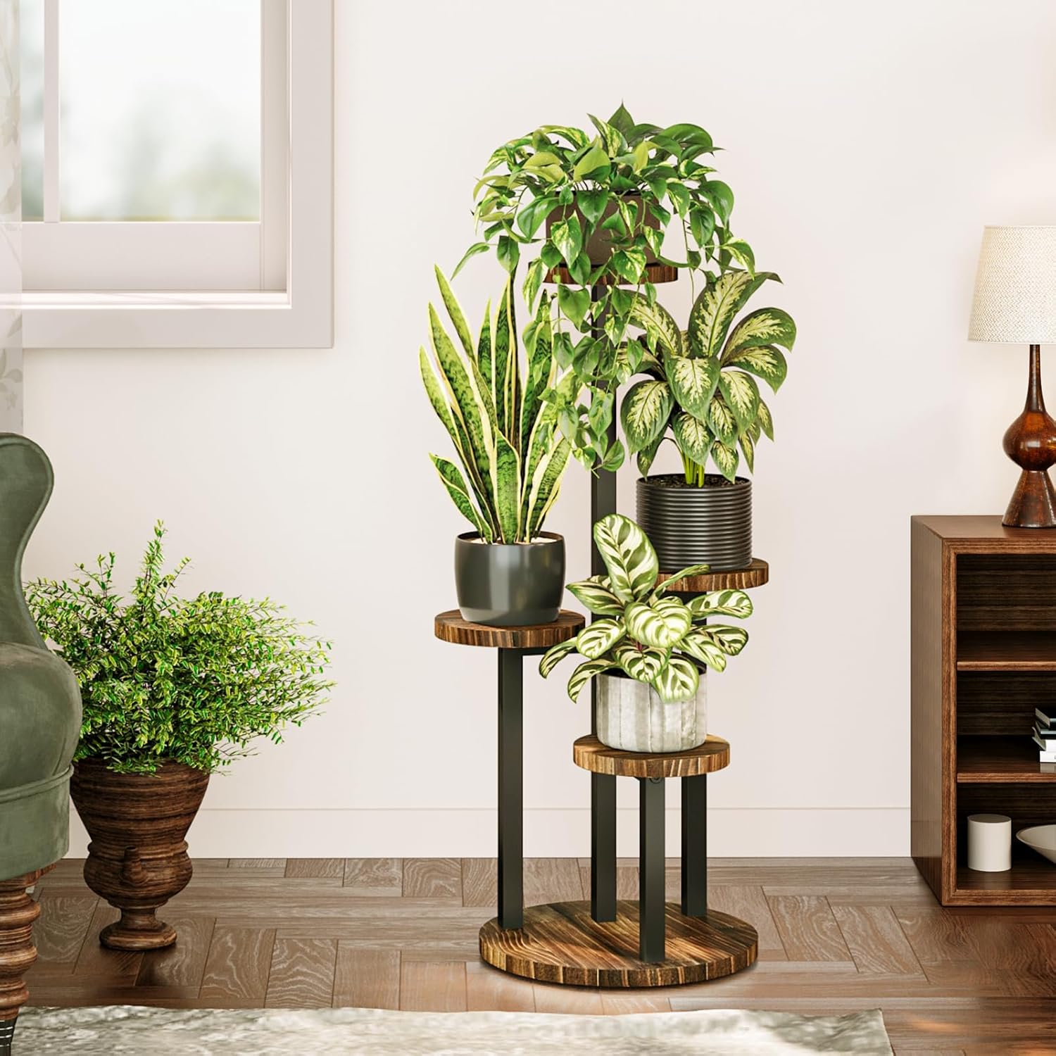 Bamworld 4 Tier Plant Stand Indoor, Tall Metal Wood Plant Shelf Outdoor,Small Flower Pot Holder Table Rack Garden Accessories for Corner Living Room Balcony Patio